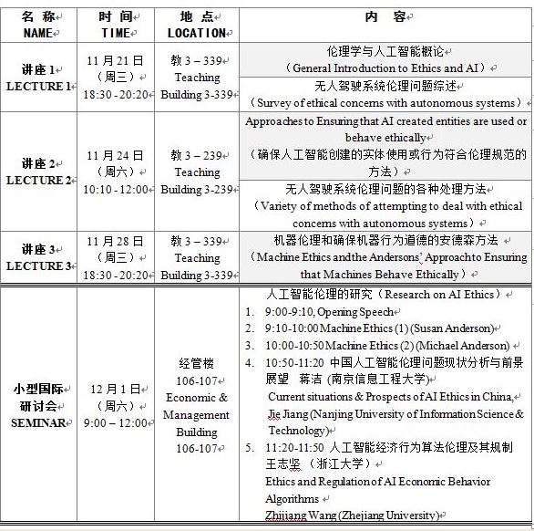题 目:人工智能伦理与社会责任系列讲座和小型国际研讨会